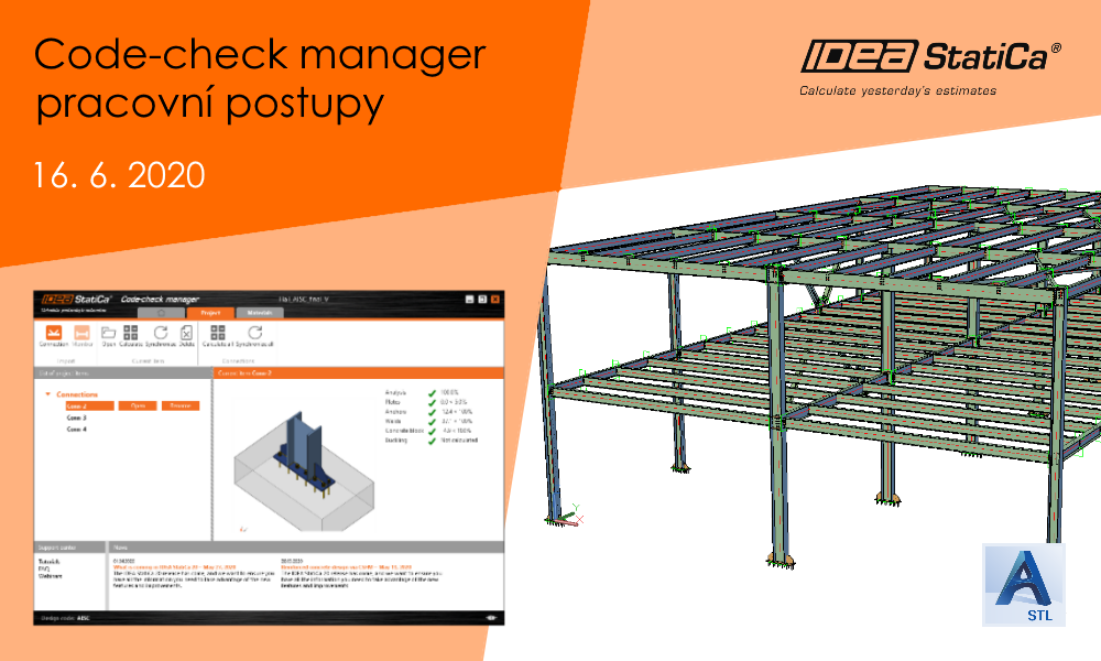 V průběhu webináře si ukážeme, jak jednoduché je exportovat a spravovat přípoje z CAD software, jako je Tekla Structures a Advance Steel. Prozkoumáme nové možnosti, které přináší CCM a seznámíme se blíže s jeho novými funkcemi. Nová verze přináší celou řadu vylepšení – CCM můžete použít pro export, správu, přepočet nebo synchronizaci všech vašich přípojů.