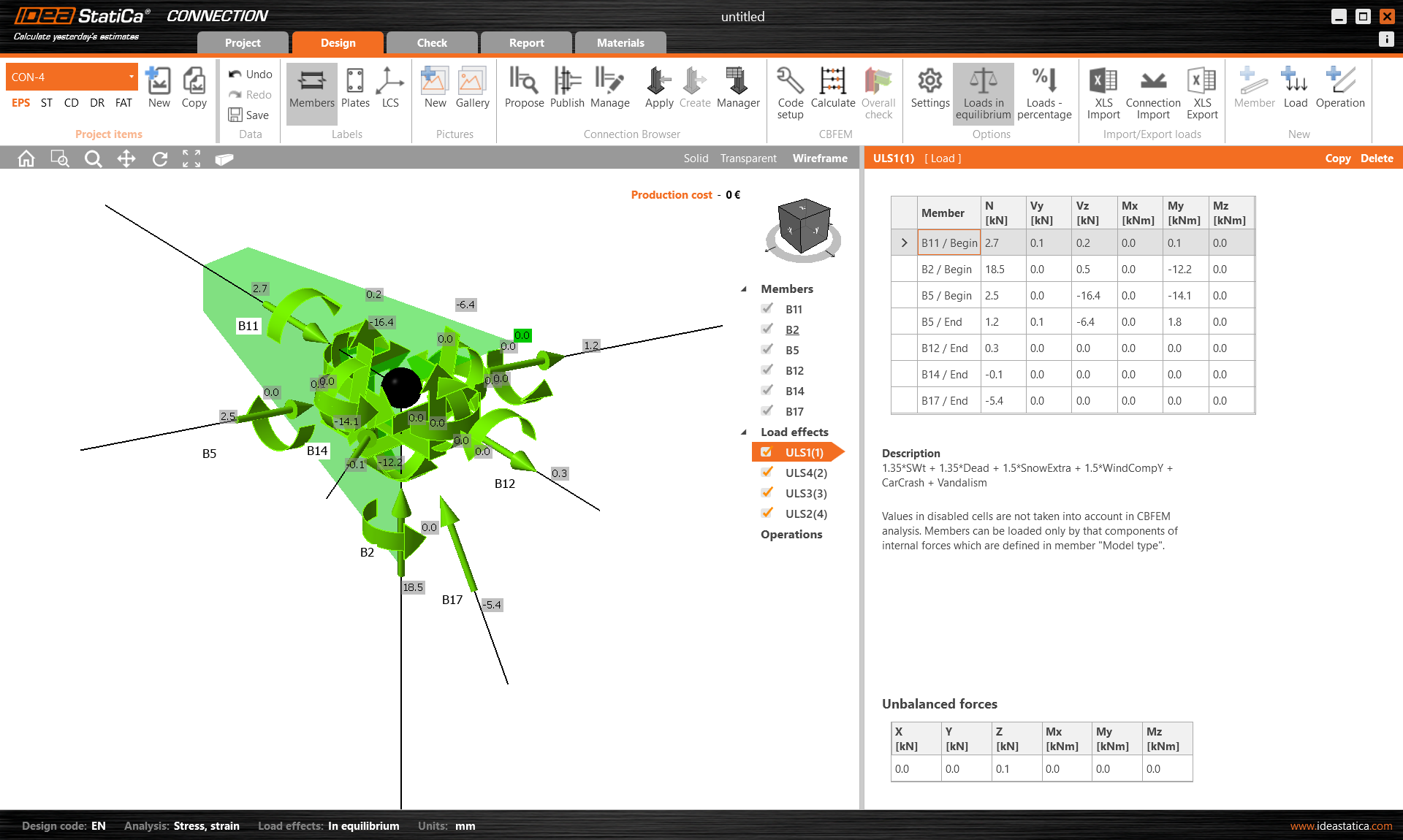 The load effects have already been imported from your FEA solution. In this case the four previously defined critical load combinations are available.