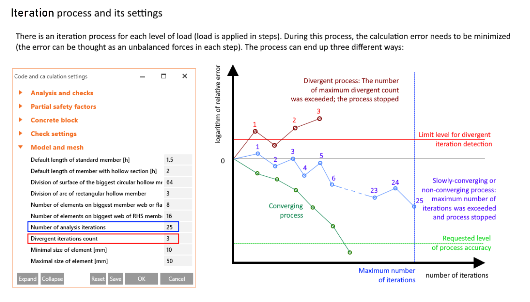 Het aantal iteraties ( 3 Divergerend en 25 Convergerend ) is een standaard gekozen instelling van IDEA StatiCa en voldoet voor 99% van de verbindingen.
