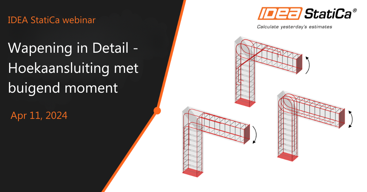 Aan de hand van een voorbeeld van een betonnen hoekaansluiting (frame corner) zullen we demonstreren wat de mogelijkheden zijn met de IDEA StatiCa Detail applicatie. In het webinar zullen we een hoekaansluiting modelleren, de resultaten analyseren en verschillende wapeningsconfiguraties onderzoeken voor situaties met een dicht of opendraaiend moment.